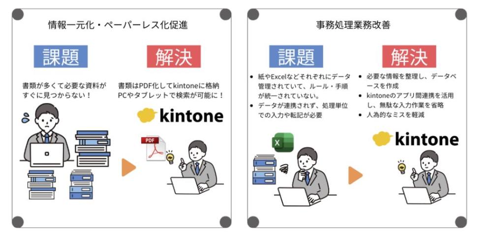 kintoneをプラットフォームとした業務改善をし業務効率の最大化を実現します。