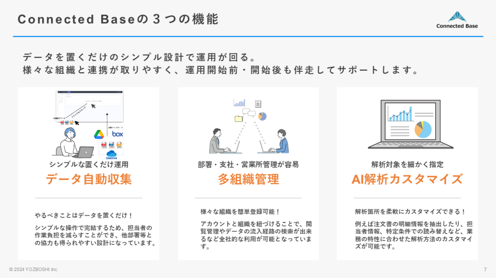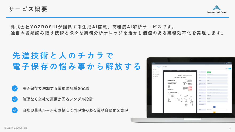 電子帳簿保存法対応保存業務効率化サービス『Connected Base』です。