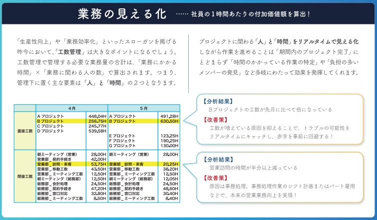 安価で労務管理、見える化、工数管理が可能であり、企業の働き方改革に繋がる