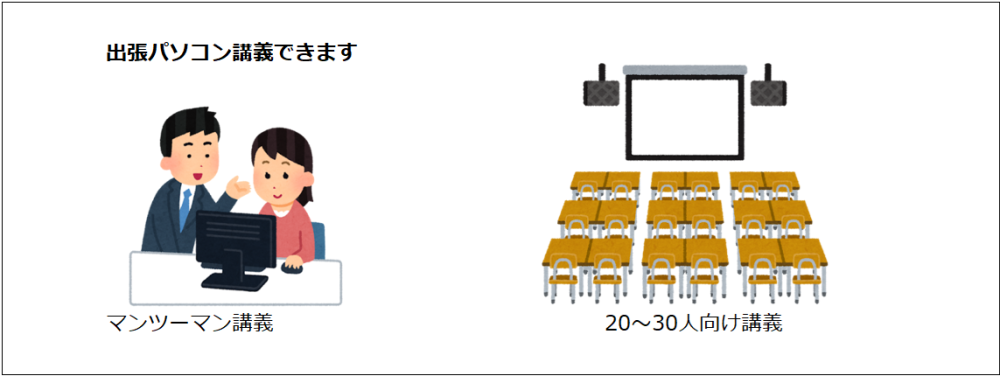 ・パソコン出張講義 2時間 2万円(受講者の人数は何人でも可。価格固定。交通費のみ別途実費精算)