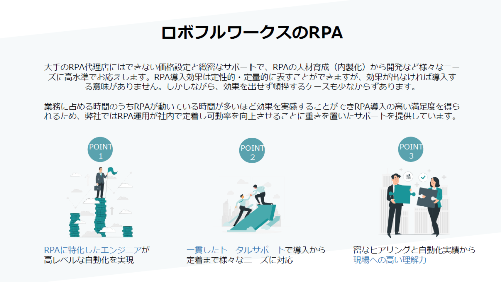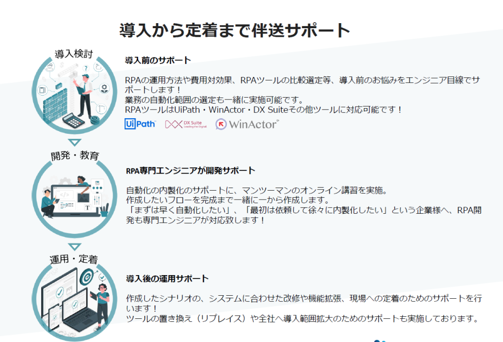 ◆RPA運用が社内で定着し可動率を向上させることに重きを置いたサポートを提供しています。