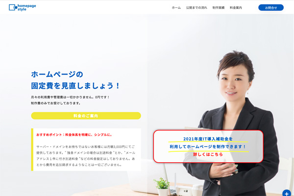 利用料や管理費はなしで最初の制作費のみをいただきます。※ドメインやサーバーがない方は格安にてご提供しております。