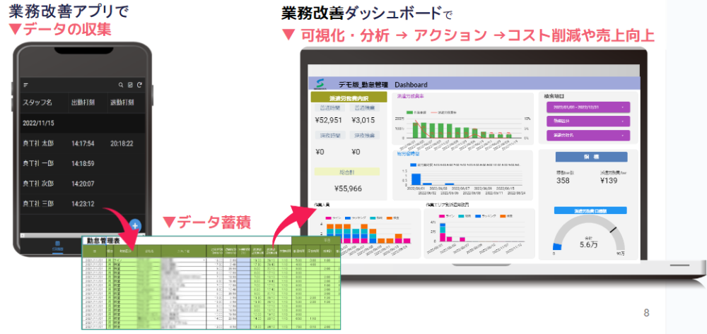 ・アイディア創出 → デジタル化により現場の見える化が進み、更なる改善や売上向上のヒントに
