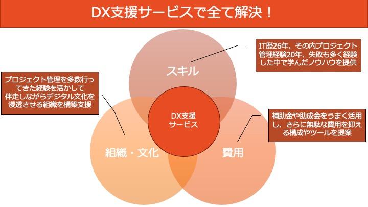 「DX支援サービス」は以下の3つを支援します。