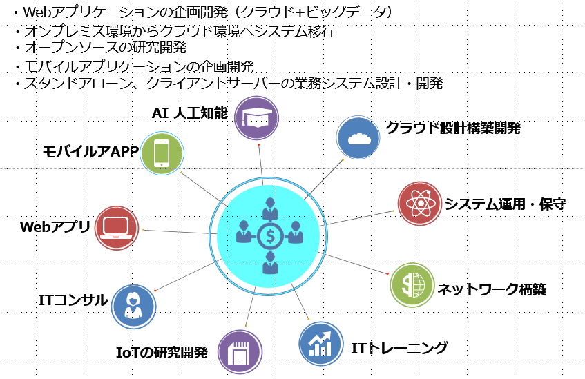業種問わず、新規システム開発、古いシステム改造、マイグレーション、スマホアプリ開発