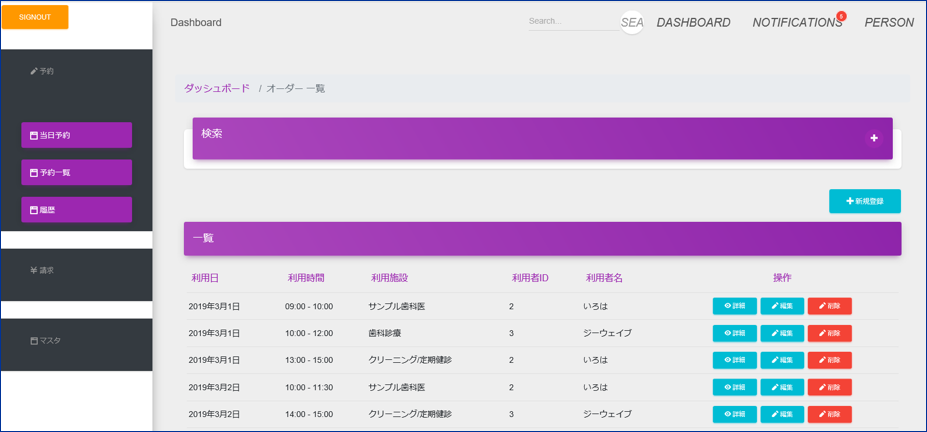 歯科医院や医療クリニック、美容室や商店など個人情報を厳密に管理する汎用予約システム。